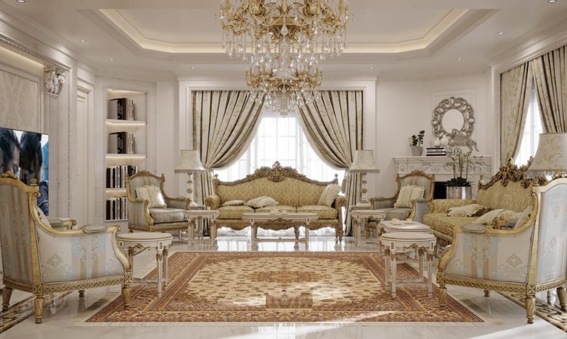 Mẫu 1: Phòng khách biệt thự cổ điển Châu Âu